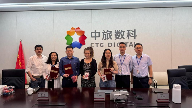 中旅數科組織“凝心鑄魂強根基、團結奮進新征程(chéng)”座談會暨“同(tóng)一個中旅”主題黨日活動,聯動深圳、南京、北京三(sān)地組織企業文化知識競賽,舉行上半年“先進個人”表彰頒獎(jiǎng)和(hé)“黨員突(tū)擊隊”授旗儀式(shì)。