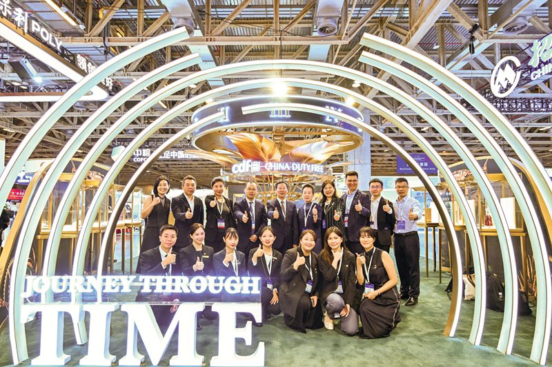 展台占地80平米,劃分珍貴腕表區、時尚配搭區和珠寶區三大區域,以綠金色為主色調,呈獻(xiàn)多款時尚名表及首飾,展台入口組成發光隧道(dào),讓參觀者仿佛踏(tà)上一場時光之旅,全麵飽覽中免多款經典腕表品牌。中免國際充(chōng)分利(lì)用高品會這(zhè)一國際交流平台,與受眾共同探索腕表品牌的無限可能性,提升集團境外品牌知(zhī)名度,鏈接更多海內外潛在合作夥伴,為集團業務發展開拓新契機、注入新活(huó)力。