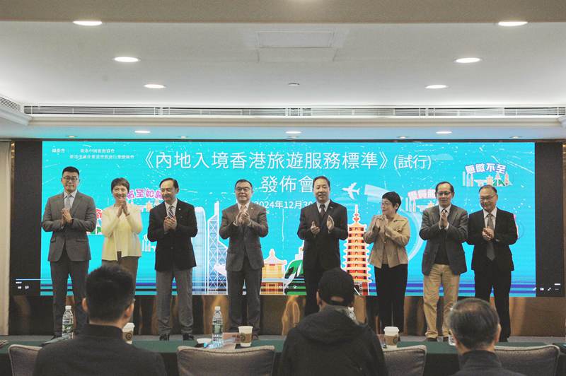 為進一步提升香港的旅遊服務(wù)質量,由香港中國旅遊協會、香港中國企業協會旅遊行業委員會共同編製的《內地入(rù)境香港旅遊服務標準》(試行)(簡稱《服務標準》)於(yú)2024年12月30日正式發布。亞洲旅(lǚ)遊交流中心張棟主任,集團簡易副總經理,香港立法(fǎ)會姚柏良議員,香港旅遊發展局、香港旅遊業議(yì)會、香港中國旅遊協會、中旅旅行相關(guān)負責人共同主持發布儀式(shì)。