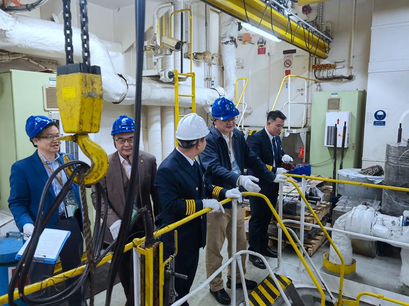 王海民仔細詢問了解各項航行設備運行狀況,深入機艙了解主機推進(jìn)係統、輔(fǔ)機供電係統、造水(shuǐ)係統、廢水處理係(xì)統以及壓載水係統等關鍵係統情況。