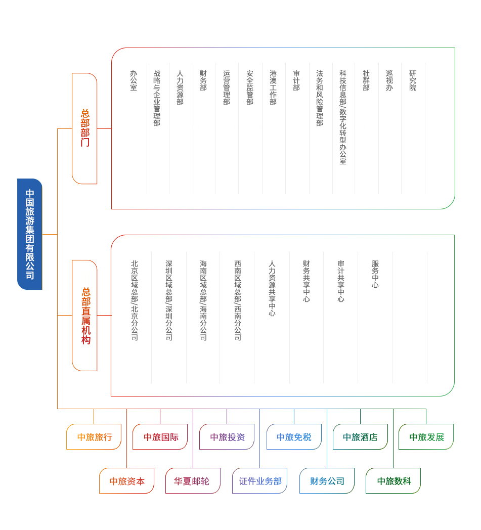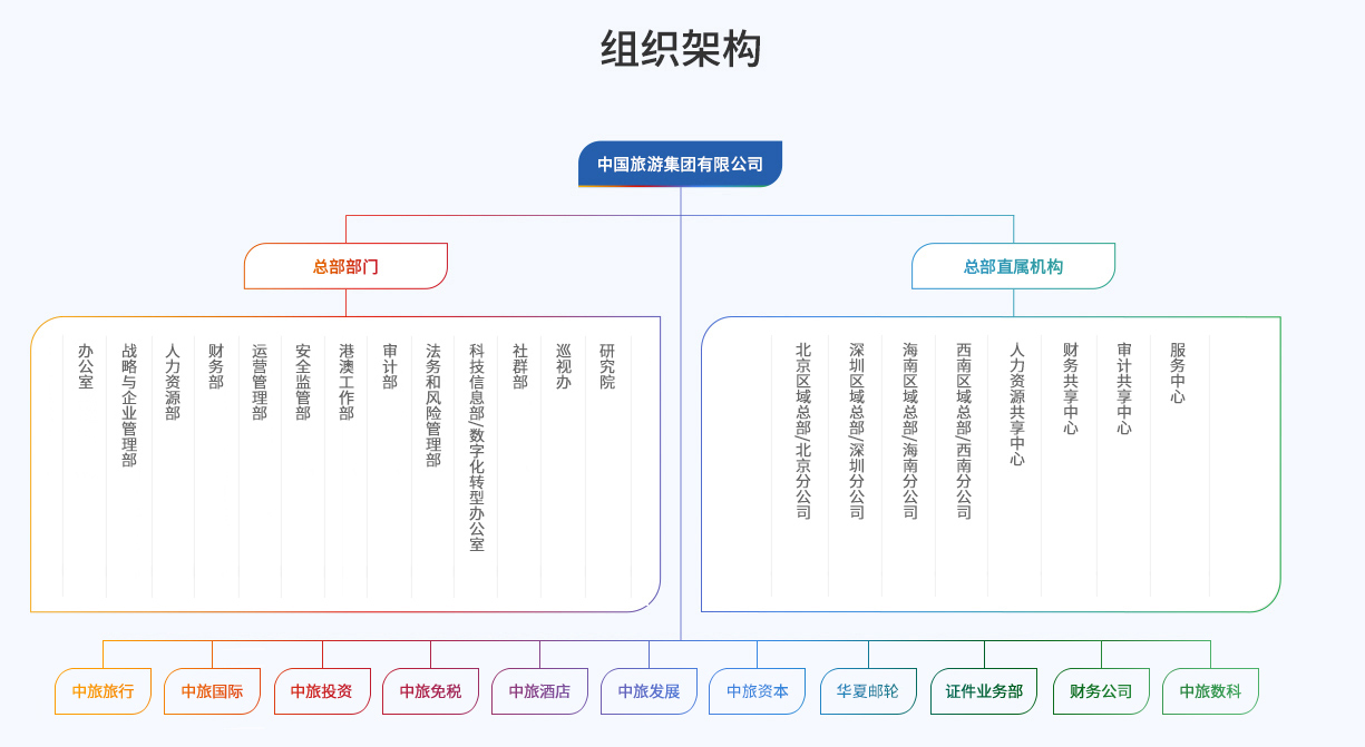 中(zhōng)國旅遊集(jí)團有(yǒu)限公司暨香港中旅(集團)有限公(gōng)司是中央直接(jiē)管理的國有重要(yào)骨幹企業,也是總部(bù)在香港的中央企業之一。集團曆史(shǐ)可追溯到1923年8月(yuè)15日上海商業儲蓄銀行設立的旅行部。經過百(bǎi)餘年的發展,集團形成了由旅行社、景區、酒店、免稅、旅遊交通、證件(jiàn)業(yè)務、郵輪、地產、文創以及在港綜合業(yè)務組成(chéng)的產業布局,經營網絡遍布(bù)內(nèi)地、港澳和海外超過(guò)30個國家和地區。集團旗下匯聚了港中旅、國旅、中旅、中免等(děng)眾多知名旅遊(yóu)品牌,是我國唯一一家以(yǐ)旅遊為主業的央企,也(yě)是目前我國發展(zhǎn)曆史最長、產業(yè)鏈條較全、經營規模較大、品牌價值較高(gāo)的旅遊龍頭企業。截至2024年底,集團員工人數超過4.2萬人,集團總資產超過(guò)2000億元,每年(nián)接待遊客超過8千(qiān)萬人次。目前(qián),集(jí)團旅遊主業的基本情況(kuàng)如下(xià):