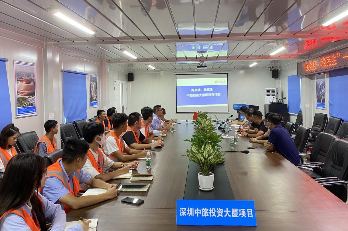 中(zhōng)旅(深圳)城市發展有限公司黨(dǎng)支部組織召開“保交樓、穩民生——中旅(lǚ)投資大廈項目在行動”會議,支部黨員、項目工作人員和總包人員參加會議。