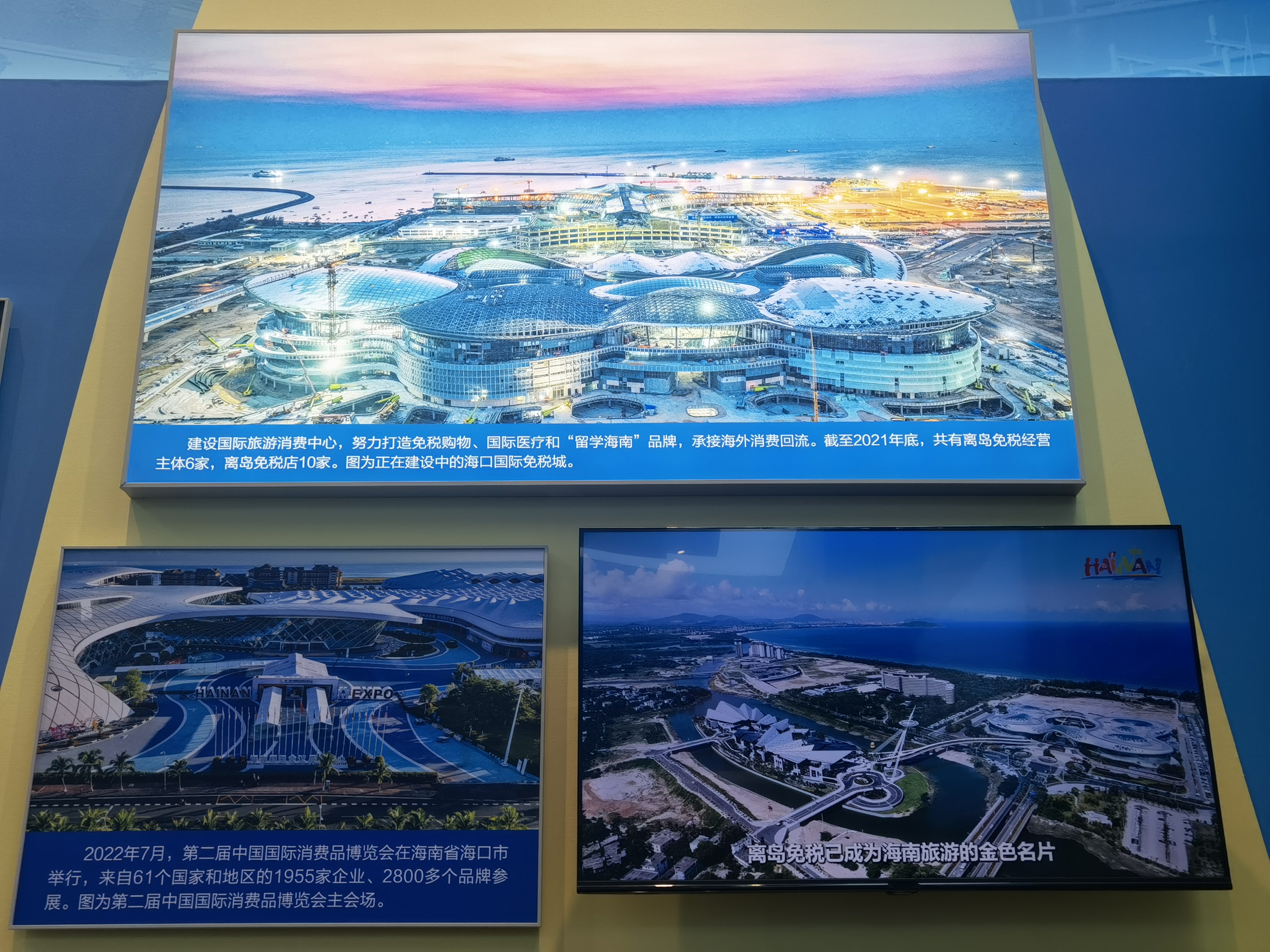 圖為主題成就(jiù)展地方展區(海南(nán))展(zhǎn)示正在建設中的海口國際免稅城