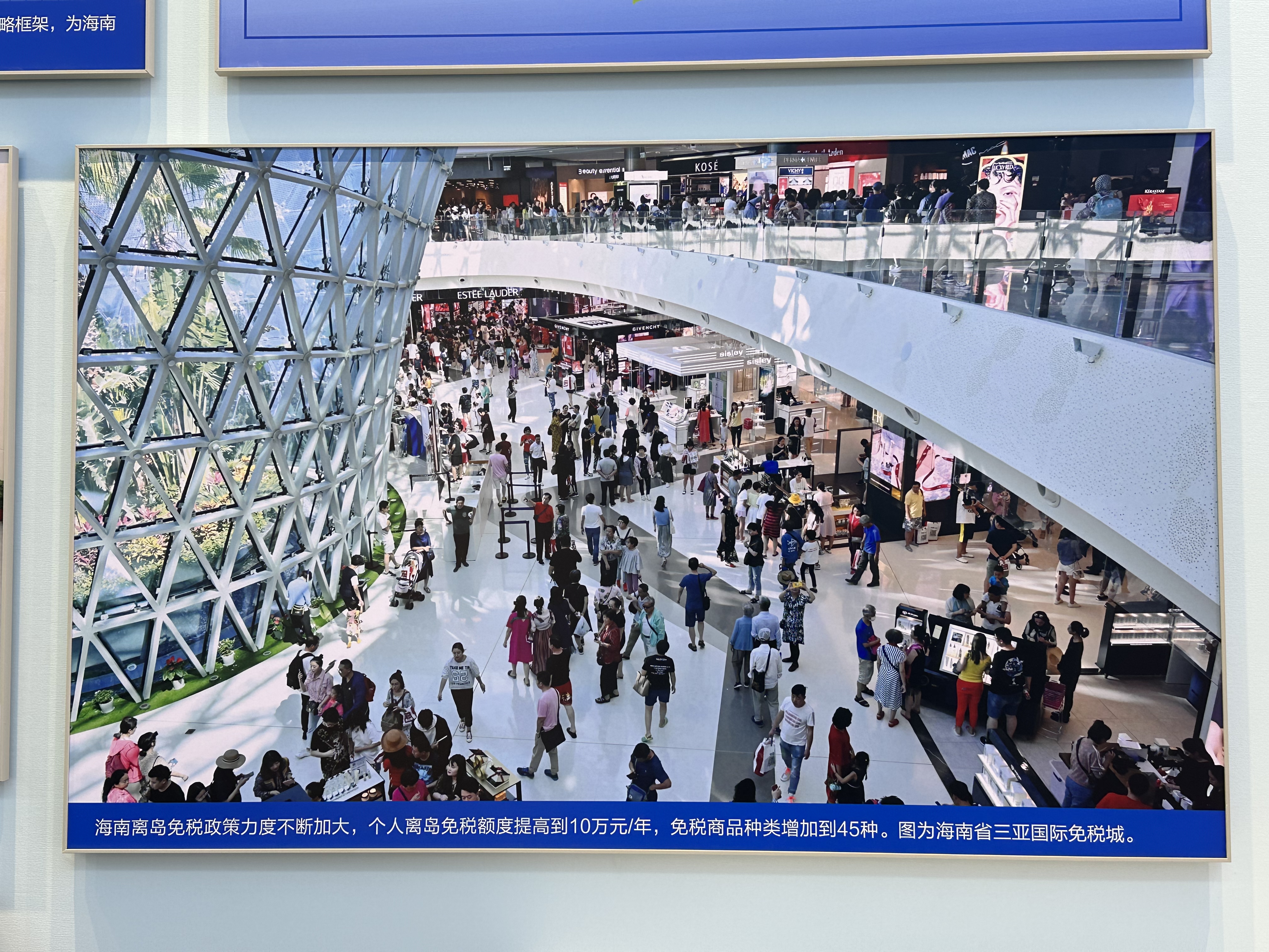 圖為主題成就展地方展區(海南)展示的三亞國際(jì)免稅(shuì)城內景。
