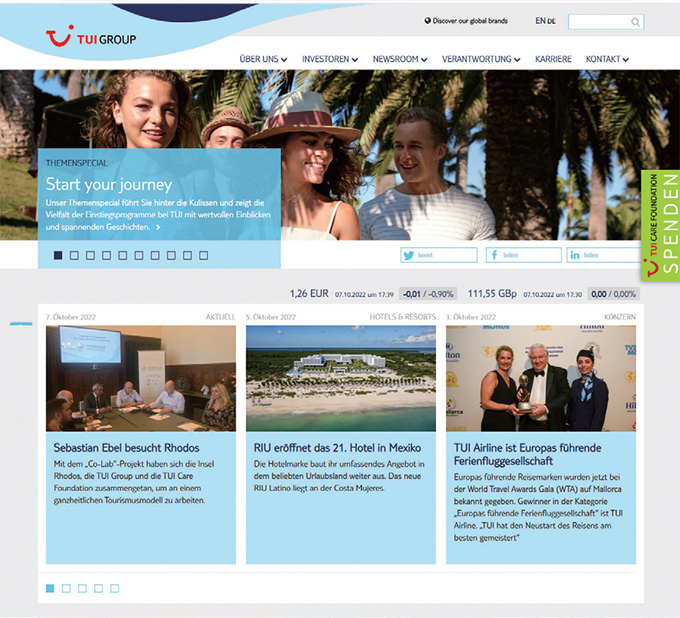 2020年初(chū),新冠疫情席卷全球,旅遊業是受疫情影響最直接的行業,大量旅遊企業業(yè)務停滯,市場(chǎng)表現(xiàn)斷崖式下跌,歐(ōu)洲老牌旅(lǚ)遊企業途易集團(tuán)僅三個(gè)月(yuè)市值下跌超過70%。近三年過去了,隨著越來越多的國家宣布取消旅遊限製,國際旅遊(yóu)呈(chéng)現複蘇態勢,預計2022年旅遊業恢複(fù)將好於預期,可能恢複到2019年8成左右。途易等大型國際旅遊企業正在走出困境。