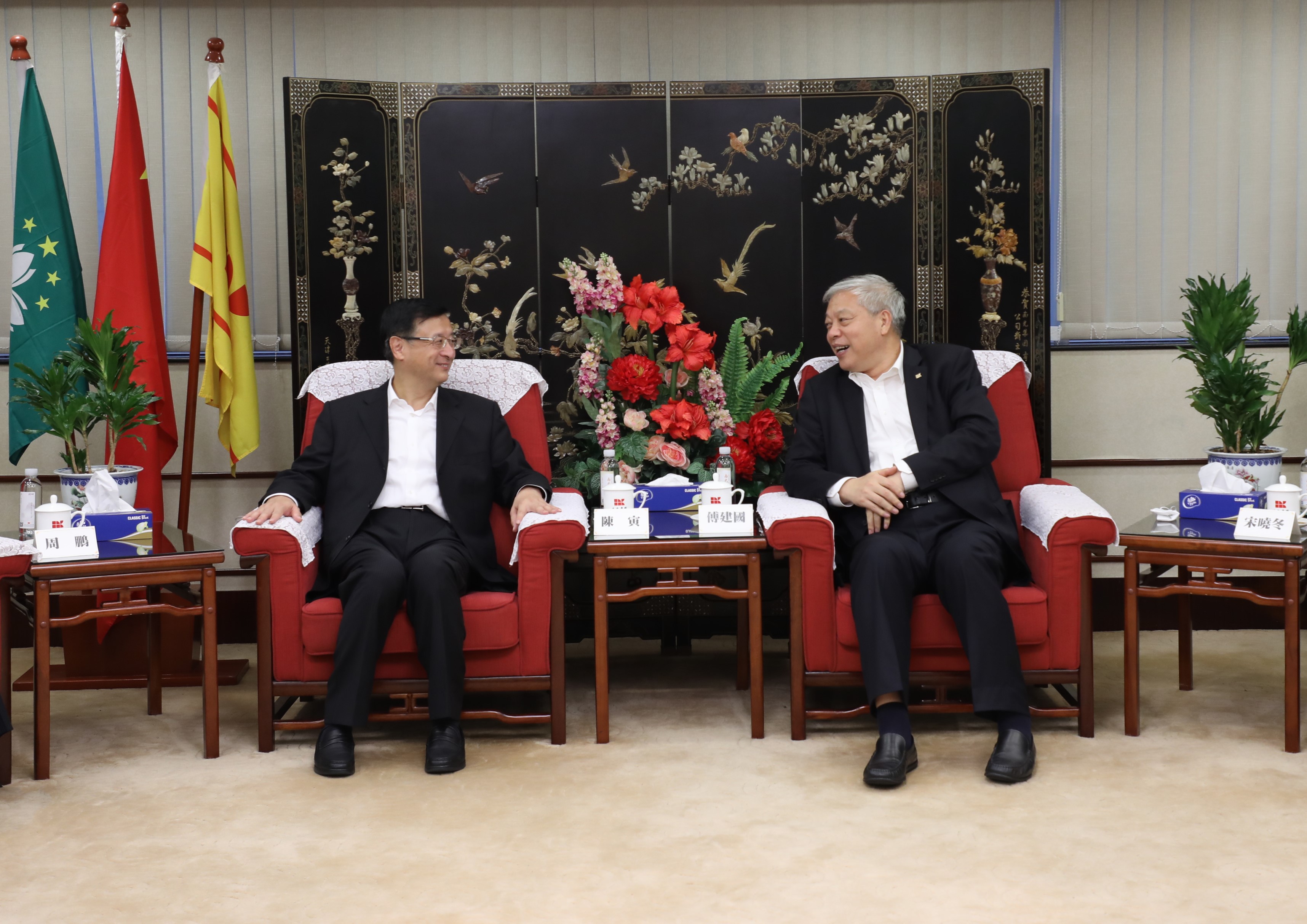 12月1日至2日,陳寅董事長分別拜(bài)訪了澳門中聯辦、澳門特區政府經(jīng)濟財政司、南光集團,並與各方進行(háng)了深入交流。