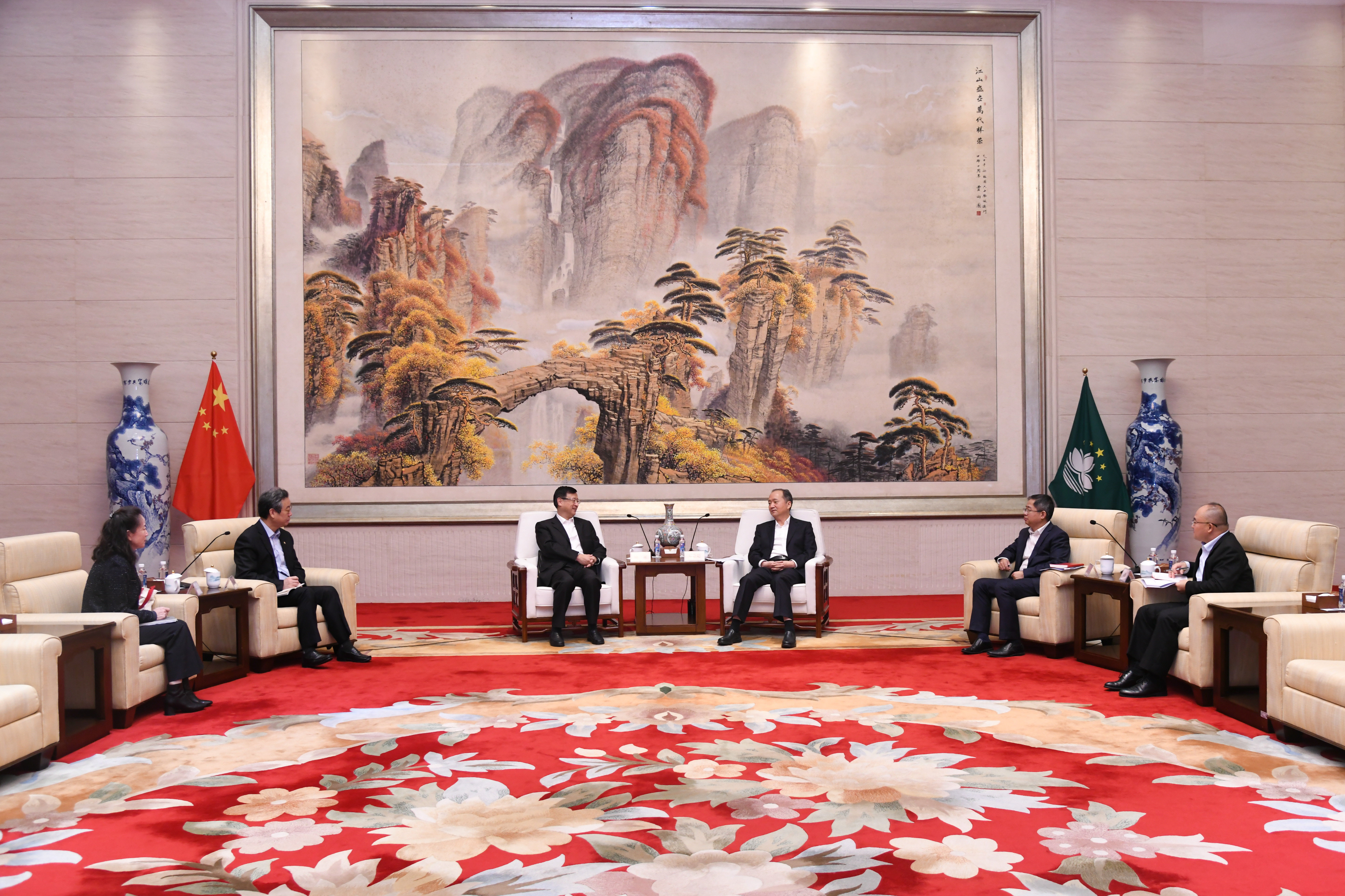 在拜訪澳門特區(qū)政(zhèng)府經濟財政司期間,陳寅董事(shì)長就集團在澳企業工作(zuò)現(xiàn)狀,以及未來在澳門的發(fā)展(zhǎn)方向與李偉農司長(zhǎng)進行了(le)深入交流。李偉農司長提到,目前澳門旅(lǚ)遊產(chǎn)業相對(duì)單(dān)一(yī),主(zhǔ)要依靠博彩業帶動旅遊消費,希(xī)望中國旅遊集團助力澳門旅遊產業豐富多(duō)元化(huà)發展。