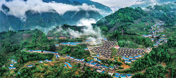 山霧籠罩下的村莊(zhuāng)更顯田園本色