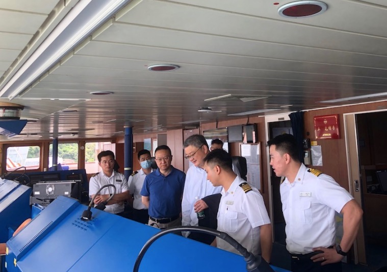 王總參觀了“鼓浪嶼”號公共區域,實地探(tàn)訪了駕駛(shǐ)室、集控室、垃圾處理區域等船員(yuán)工作生活區域,與(yǔ)一線船員深入了解船舶設施、設備的各項運營(yíng)及維護情況。