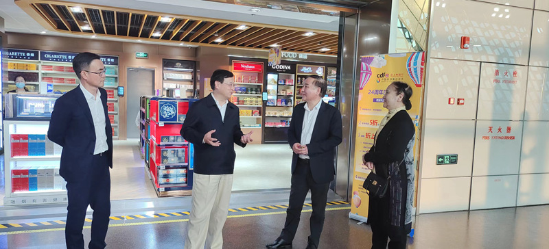 中旅免稅(shuì)董事長、總經理王軒和相關負責人參加調(diào)研。