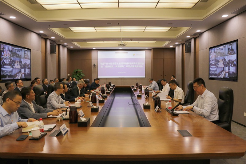 為進一步落實習近平(píng)總書記2022年4月11日視(shì)察集團三(sān)亞國際免稅城時提出(chū)的“以誠信經營、優質服務(wù)吸引消費(fèi)者”的重要指示精神,深入推進集團“誠信經(jīng)營、優質服務”示範點建設工作,4月12日,集團在三亞國際免稅(shuì)城召開習近平總書記視察三亞(yà)國際免稅城(chéng)兩周年座談會暨“誠信經(jīng)營(yíng)、優質服務”示範點建設推進會。集團陳寅(yín)董(dǒng)事長,國務院國資委黨建局中央企業團工委副書記周林(lín)同誌出席會議並講話,中免集團三亞市內(nèi)免稅店有限公司、中(zhōng)旅廣(guǎng)西德天(tiān)瀑布旅遊開發有(yǒu)限公司、三沙南海夢之旅郵輪有限公司(sī)三家示(shì)範(fàn)點(diǎn)企業作了經驗交流分(fèn)享。會議由集團王海民總經理主持,集(jí)團石善博副總經理、集團總部及二級(jí)公司(事業群)、三級公司相關人員共計110餘人(rén)參加會議。