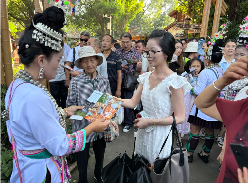 為讓更多的遊客聆聽侗族大歌,了解黎平,走進黎平和黃崗侗寨,中(zhōng)國(guó)旅遊集團與深圳錦繡中華經過(guò)前期對接,在國慶黃金周讓侗族大歌走進廣東旅遊熱門目的地——深圳錦繡中華。從1號至5號,每天下午4:00,6:10,8:40每天進行三場(chǎng)演(yǎn)出宣傳推廣活動,其(qí)中包(bāo)括寨門迎賓、侗族大歌專場演出(chū)、現場發放宣傳資料、快閃等內容,每到一處都引來無數遊客圍觀追隨,每天觀看遊客5000餘人次。