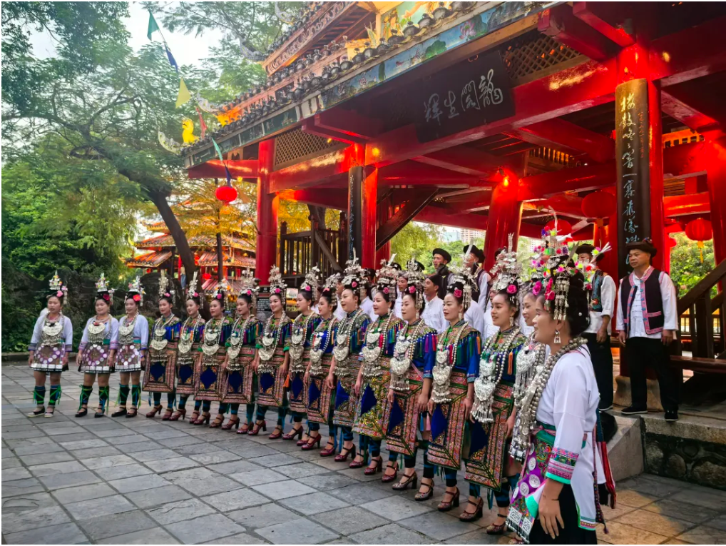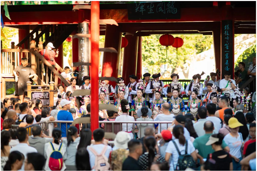 10月1日至5日,由中國旅遊集團幫扶資金支持貴州省黎平縣(xiàn)黃崗村、平架村、縣藝術(shù)團40名侗族歌手在深(shēn)圳錦繡中華開展——2024年黃崗侗寨侗族大歌傳承項目推廣活動。