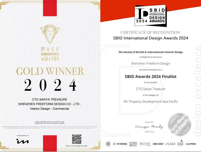 繆斯設計獎(MUSE Design Awards)設(shè)立(lì)於2015年,是國際獎項協會IAA(International Awards Associate)旗下(xià)的全球性獎項賽事之(zhī)一,素(sù)有“設計界奧斯卡”之稱。英國SBID國際設計大獎(The SBID International Design Awards)設立於2009年,每年評選表彰兼具技術含量與美學創意的優秀設計,是設計行業頗具聲望的獎項(xiàng)之(zhī)一。中(zhōng)旅(lǚ)投資將總結中旅·馥棠公(gōng)館產品設計的成功經驗,將先(xiān)進的設(shè)計理念運用到其他項目中,持續打造有特色、高(gāo)品質的精品產品。