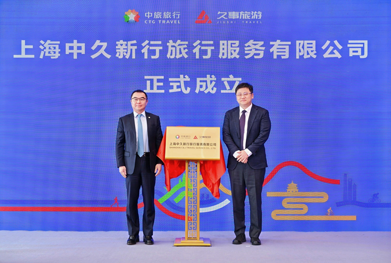 4月25日,中旅旅行與(yǔ)久事旅遊合資組(zǔ)建的上海中久新行旅行(háng)服務有限公司(以下簡稱“中久新(xīn)行”)在黃浦江畔(pàn)的世界會客廳舉行揭牌(pái)儀式。集團黨委委員、副總經(jīng)理簡易與久事集團黨委副(fù)書記葉章毅共同為新公司揭牌(pái),上海市文化和(hé)旅遊局、中旅旅行、久事旅遊相關負責人及合(hé)作夥伴、旅行商代表共同出席了此(cǐ)次(cì)活動。