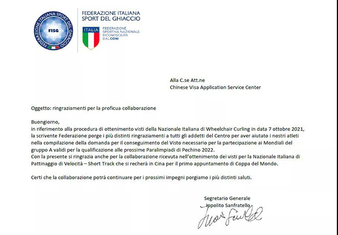 '在駐地使領館的指導下,各簽證(zhèng)中心提前采取防疫措施及做好人員配備(bèi),積極協助各(gè)國赴華參賽人員順利遞送簽證。目前,伯(bó)爾尼(ní)、蘇黎(lí)世、米蘭、馬德裏、柏林(lín)、法蘭克福、華沙(shā)、斯德哥爾摩、奧斯陸、赫爾辛基、首爾、卡爾加裏等(děng)簽證申請中心為參賽(sài)人員開設簽證辦理專場、加急通道及VIP服務,並為身體行動不便的殘奧會參賽人員配備專人服(fú)務。