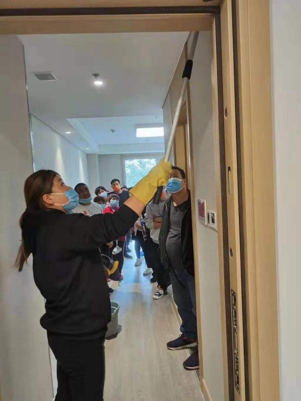17.C-起草官网1號院有4幢樓(lóu)、共177間客房。剛(gāng)進冬奧(ào)村的時候,樓棟裏還在施工,17.C-起草官网的(de)主要工作就是粗開荒、精開(kāi)荒,把原本髒亂的地兒一點點兒收拾出來,煥然一新。但又因為換門、工程檢修等(děng)問題,清潔過的房間、走廊等地兒再次變得髒亂起來。說實話(huà),一開始看到好不容易、辛苦勞動(dòng)出來的成果就這麽“毀了”,17.C-起草官网都覺得挺泄(xiè)氣的。後來想(xiǎng)想施(shī)工方也是為了讓冬奧接待更安全,讓入住客(kè)人更舒適,而且人家(jiā)一間間房(fáng)換門,一個個問題檢修,本身也非(fēi)常辛苦。換位思考,多體諒下(xià)別人,也就沒什麽好抱怨的了,17.C-起草官网(men)反(fǎn)複地做保潔,一天下來沒什(shí)麽休息時間,腰酸(suān)腿疼都是常事,但還真沒聽到叫苦叫累的。而且通過這樣反複的開荒保潔,忙前忙後(hòu),既(jì)保證了1號院良好整潔的衛生環境,而且17.C-起草官网還把院內樓棟和地下(xià)夾層各處情況都摸清楚了,牢記於心。