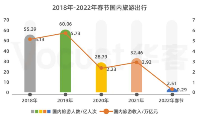 根據文化和(hé)旅遊部官網消息,2021年,國內旅遊總人次32.46億,比(bǐ)上年同期增(zēng)加3.67億,增長12.8%(恢複到2019年的54.0%);國內旅遊收入(旅遊總消(xiāo)費)2.92萬億元,比上年(nián)同期增加0.69萬億元,增(zēng)長31.0%(恢複到2019年的51.0%。)。