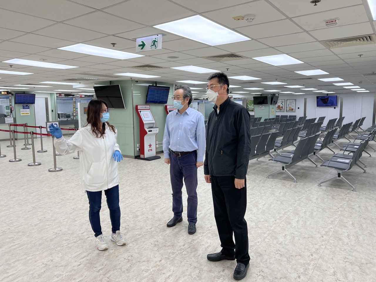 隨後(hòu),石(shí)總一(yī)行來到九龍東證件服務中心,石總認真聽取了證件服務中心關於疫情(qíng)防控和證件業務開展情況的匯報,特別是此次證件部為內地支援香港抗(kàng)疫人(rén)員辦理簽注延(yán)期的情況(kuàng)。石總對香港第五波疫情(qíng)爆發以來,證件服務中心營業至今沒有發生一起員工和辦證顧客在中心感染新冠肺炎的個案,給予了充分肯定。石(shí)總要(yào)求證件業務部要堅持(chí)疫情防控不放鬆,守住辦證場所不發生聚集性疫情的底線,保障員工和客戶健(jiàn)康安全(quán),確(què)保不間斷地為香港市民提供緊急、必要的證件(jiàn)服(fú)務(wù)。(集團社群部)