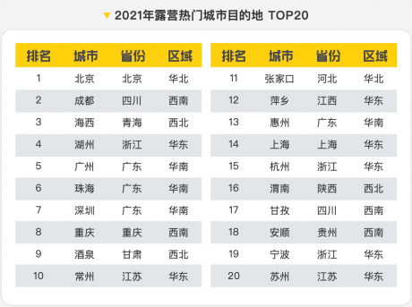 來自一線及新一線城市的消費者是露營的主要客源,對他們來說,露營不僅僅是換個地方睡覺,更是逃離喧囂生活的(de)心靈(líng)棲息。其中(zhōng),北京、成都、上海(hǎi)、廣州包攬露營客源地前四,對露營總遊客量的貢獻超過三成。