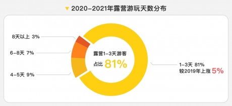 放鬆休閑的屬性決(jué)定了以周(zhōu)末出行為(wéi)主的“微度假”是露營最主要的場景。數據顯示,81%的遊客選擇用1-3天來體驗露(lù)營,親近(jìn)自然、恢複元氣。露營地(dì)的選擇也不僅局(jú)限於所在(zài)城市,很多消費者喜歡到周邊城市體驗更新鮮的環境。比如,廣州和深圳的消費者,會選擇自駕1-2小時即達的惠州、佛山、中山露營。