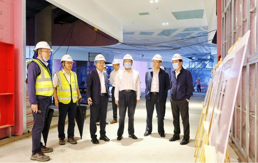 在項目地塊五施工現場,陳(chén)董(dǒng)實地(dì)查看施工進(jìn)度、主題中庭效(xiào)果展示和室內(nèi)精裝、幕牆樣板段,詳細(xì)了(le)解選材用料和施工麵臨的難點和問題。