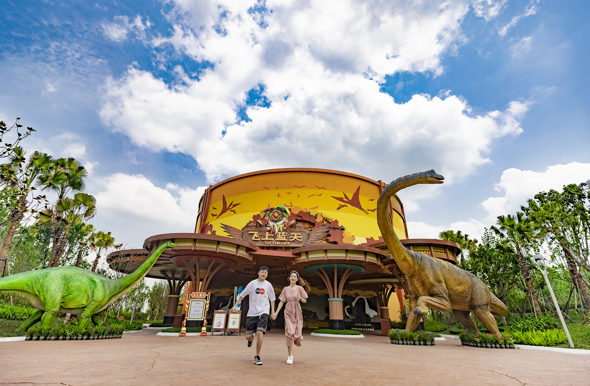 在“方特恐龍王國”,遊客既可以與翼龍同行(háng)翱翔藍天,俯瞰史前地球風光、壯麗美景;也可以深入神秘河穀,與恐龍近距離接觸;還能探尋地下世界,感(gǎn)受古蜀(shǔ)文明。