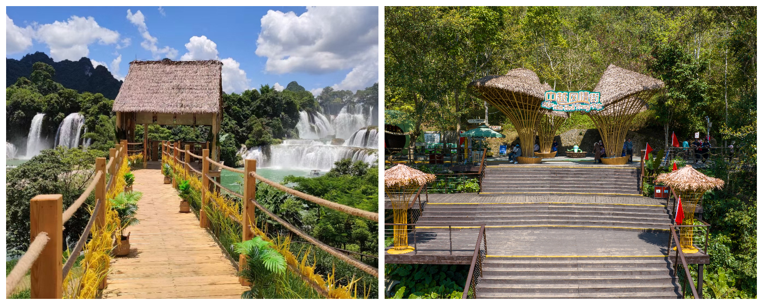 景區在堅持跨境與綠色旅遊理念(niàn)的基礎上(shàng),精心規劃了包括六大觀景平台、觀瀑茶舍、中越跨境街以及中越風情街在內的多個特色文化觀景與體驗區域。這(zhè)些區域不僅為遊客提供了觀賞瀑布這一自然奇觀的絕佳視(shì)角,更(gèng)搭建了一座深入理解和體驗中越文化交流的橋梁。
